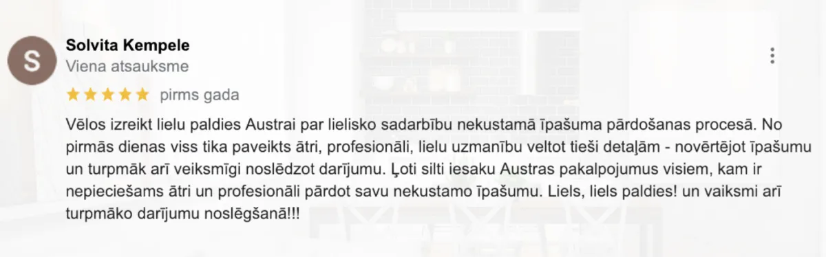 Kaulēšanās procesa vadīšanu un dzīvokļa īpašnieka interešu pārstāvniecību visā darījuma gaitā.